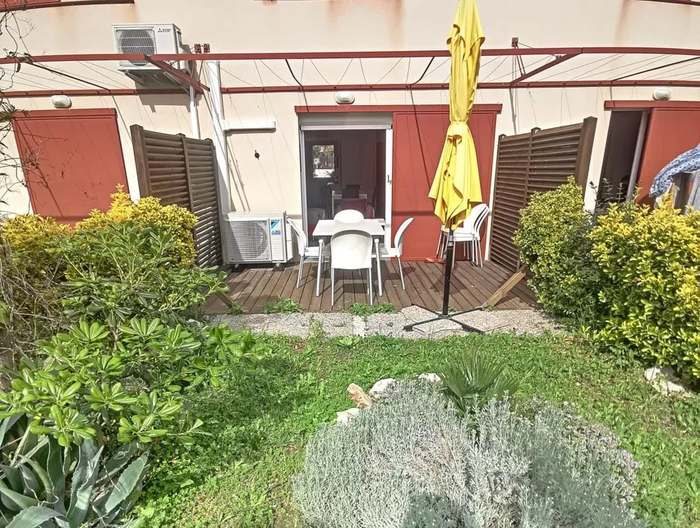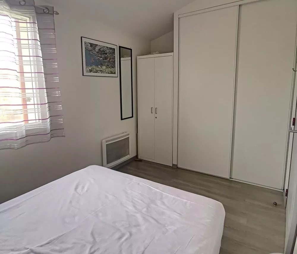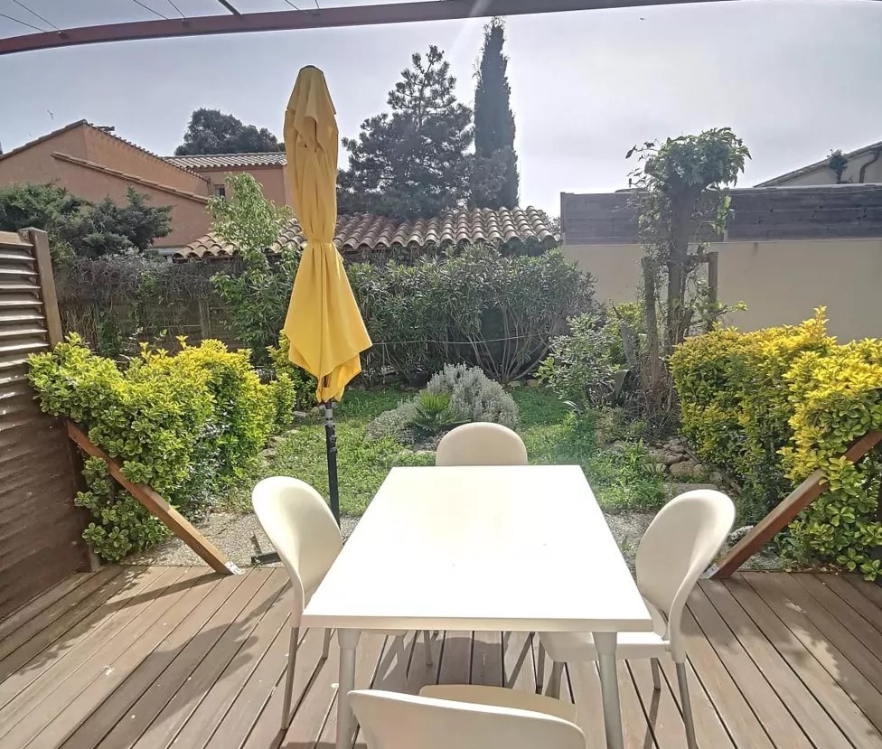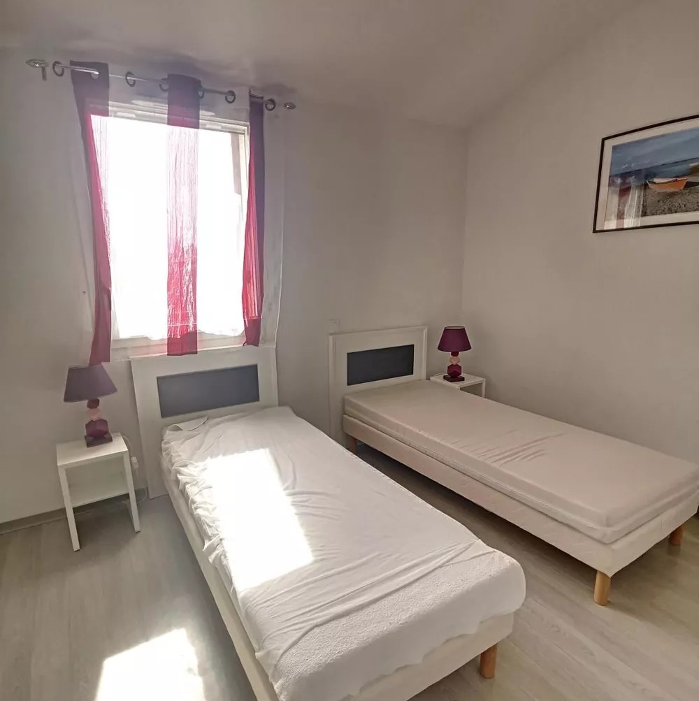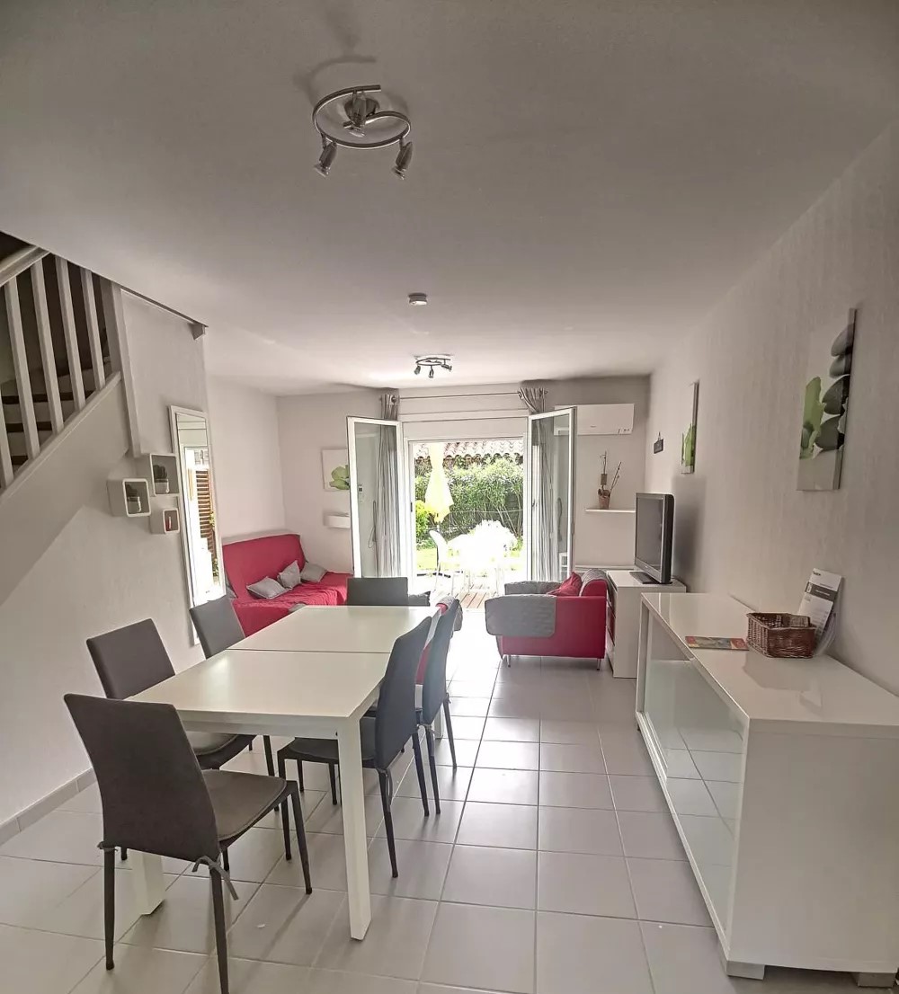 Cette villa offre en rez de chaussée une entrée, une pièce de vie avec cuisine équipée, à l’étage 1 chambre avec lit double, une chambre avec 2 lits simples et une chambre avec lit superposé, une salle d’eau avec WC. La terrasse et le jardin attenant au salon vous permettrons de profiter de l’extérieur.
